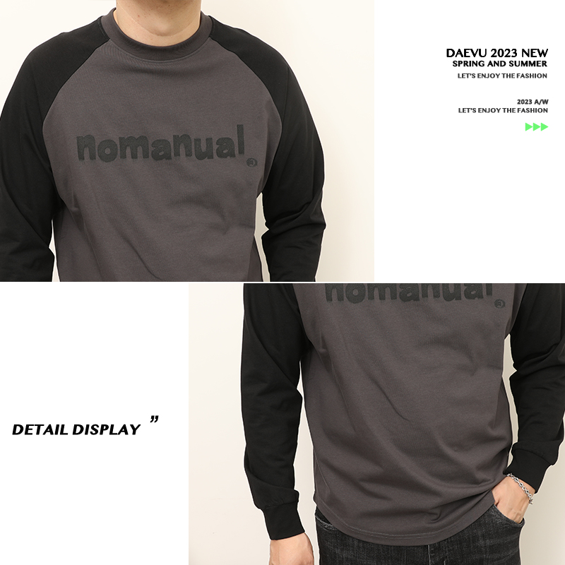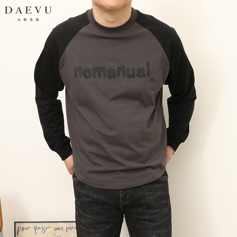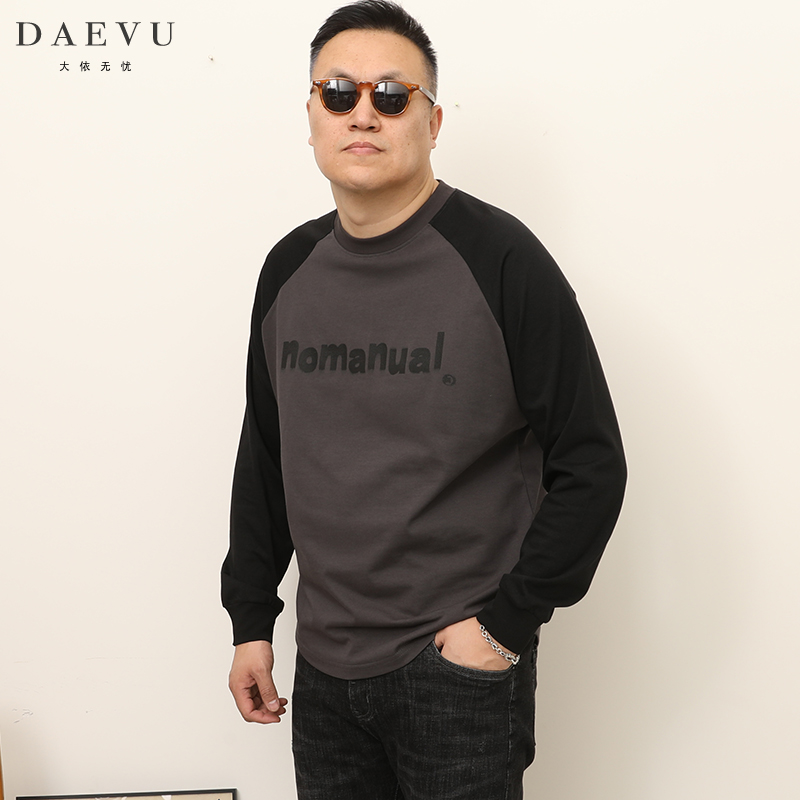 圆领插肩长袖 男装 T恤 日韩复古大号潮胖子加肥加大码 DAEVU春秋新款