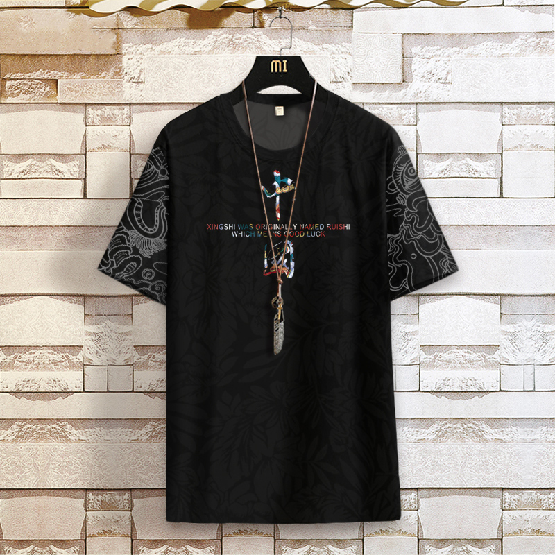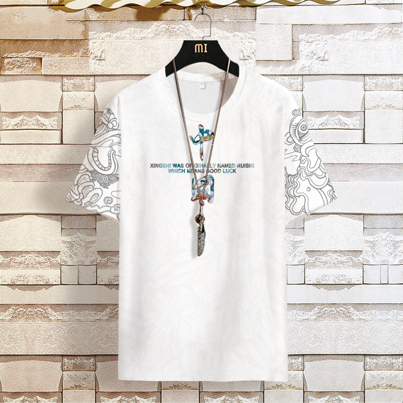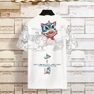 夏季 体恤衫 薄款 修身 国潮醒狮短袖 显瘦半袖 T恤男中国风ins潮流个性
