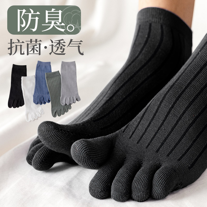潮短筒男袜夏天 纯棉中筒袜防臭吸汗分趾袜夏季 五指袜子男士 春秋季