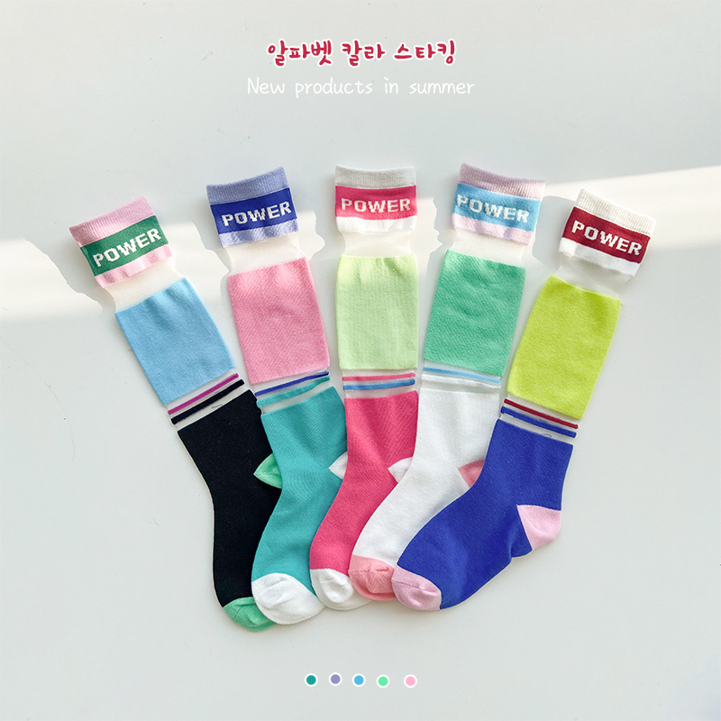 女童长筒袜春夏季 儿童韩国拼色潮袜宝宝中筒堆堆袜过膝小腿袜 薄款