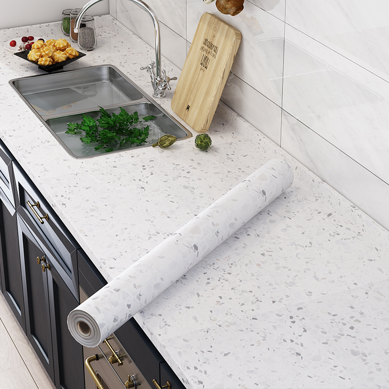 厨房防油贴纸家具翻新墙纸自粘防水大理石灶台面贴膜桌面铝箔PET