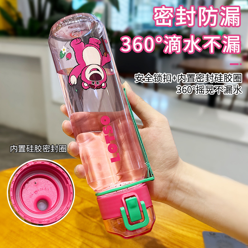 迪士尼儿童水杯草莓熊tritan随手杯大容量便携塑料直饮杯子水壶