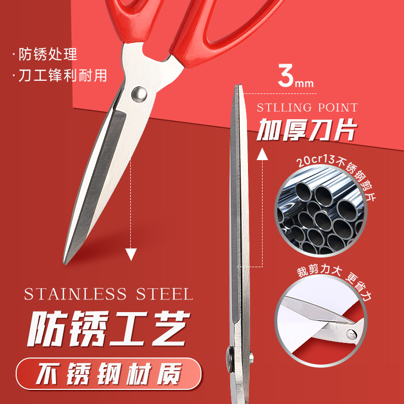 大号剪刀家用不锈钢锋利红色修枝剪安全不易滑剪树枝裁缝剪线头专用办公小剪刀厨房工业多功能便携中小号剪子
