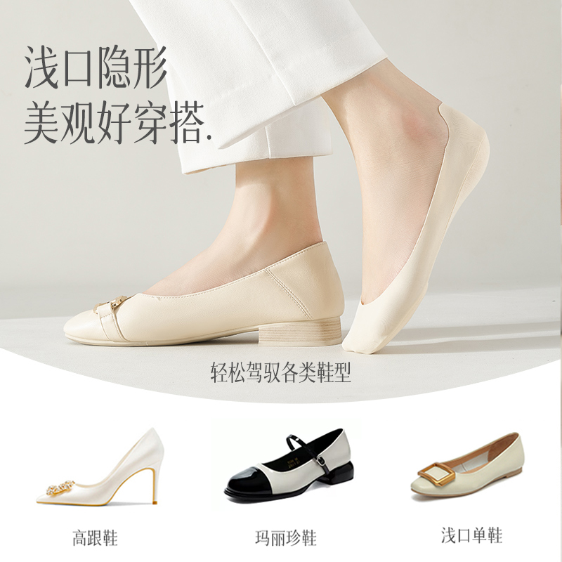 高跟鞋 袜子薄款 袜子 冰丝隐形袜棉制底防滑不掉跟浅口鞋 船袜女夏季