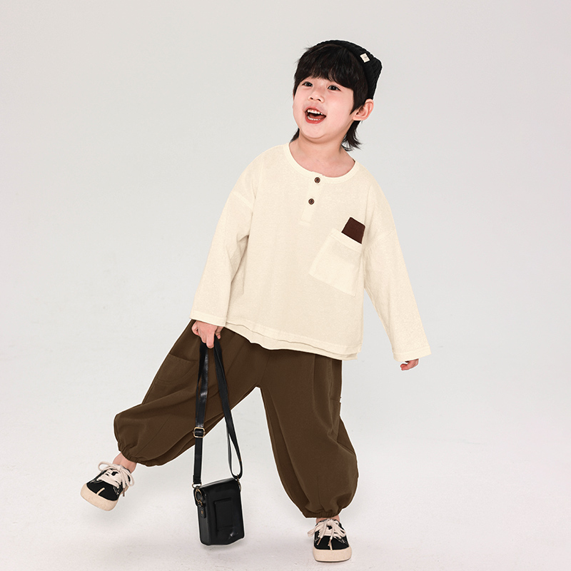 儿童森系纯棉上衣中小童男孩春秋打底衫 新款 t恤2025秋装 男童长袖