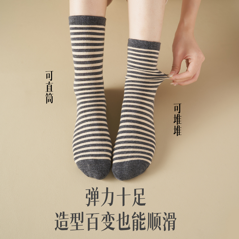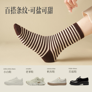 条纹袜子女春秋款 堆堆袜日系百搭中筒袜 情侣长袜学院风搭配乐福鞋