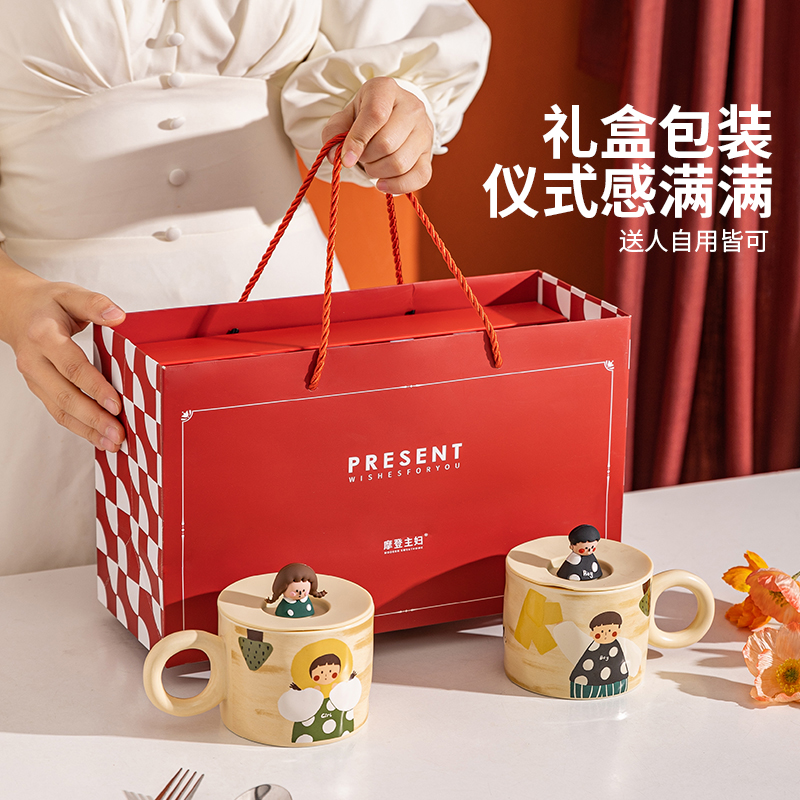 摩登主妇陶瓷马克杯订婚结婚新婚礼物水杯高级感一对杯子情侣对杯