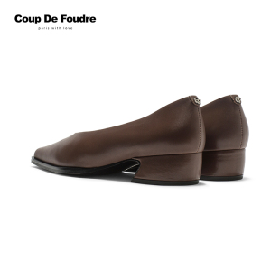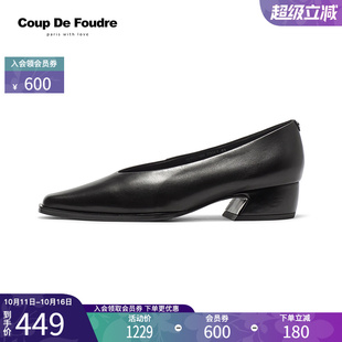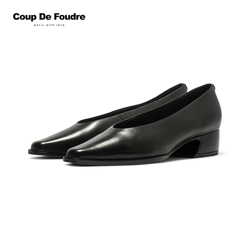 单鞋 羊皮浅口法式 千百度粗高跟鞋 异形跟职业通勤大码 静音系列