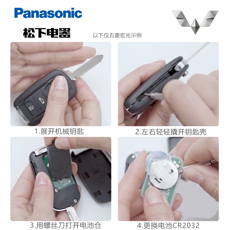 一键启动 CR2032原厂松下3v纽扣电子锁匙配件 适用2023年22款 2.0上汽五菱凯捷汽车专用智能遥控器钥匙电池原装