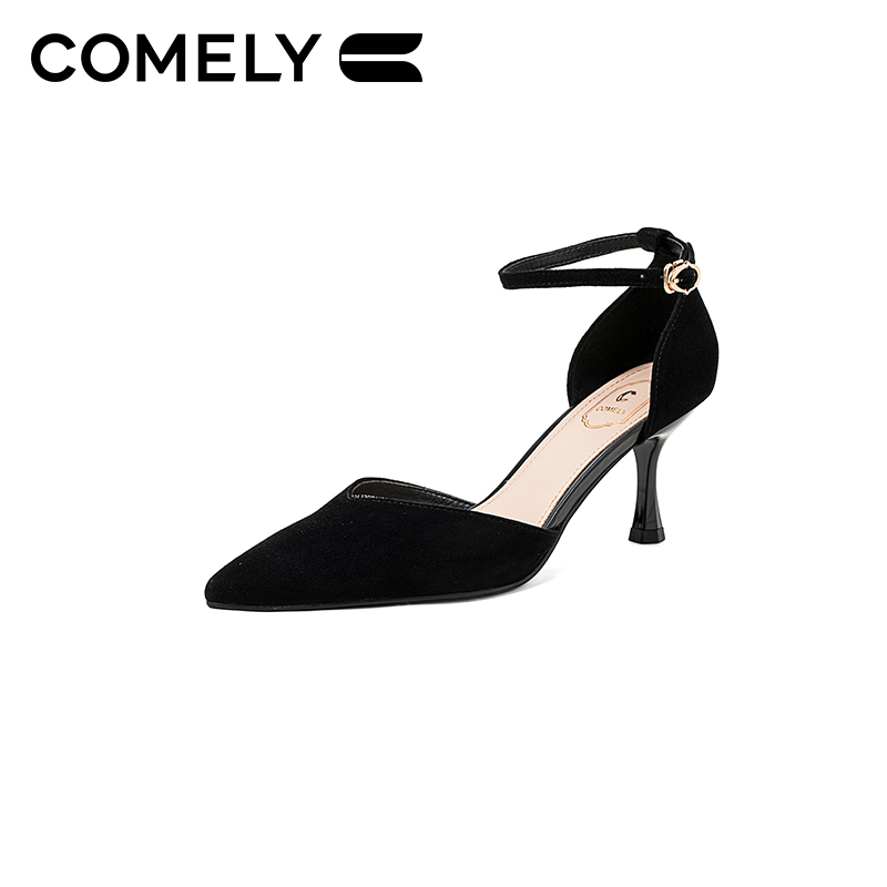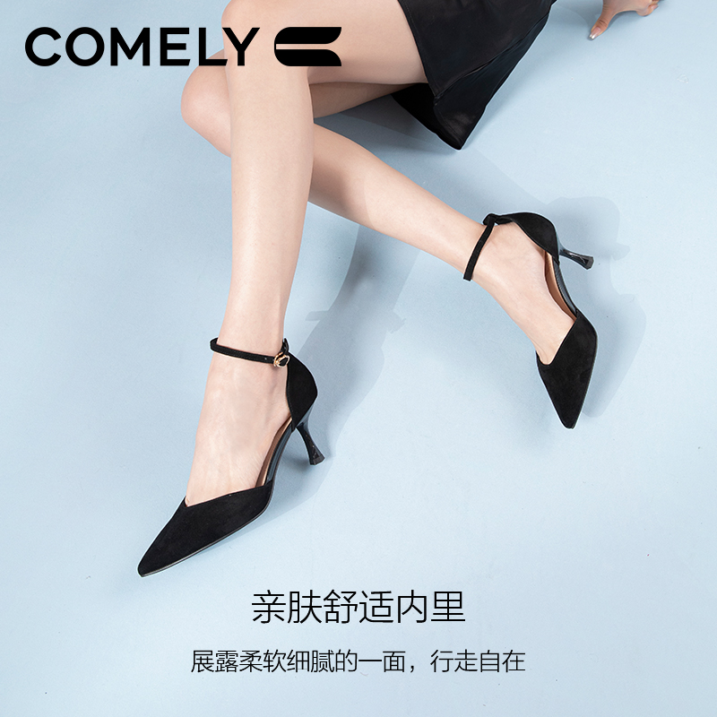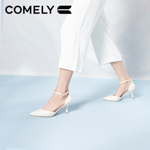 女2024年春季 高跟鞋 新款 尖头羊皮法式 商场同款 康莉一字带包头凉鞋