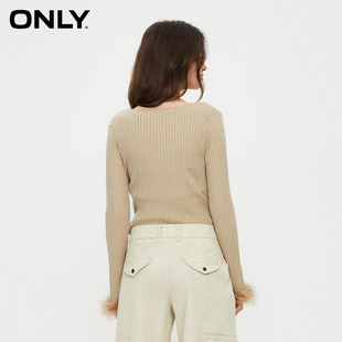时尚 女 潮流百搭V字领修身 针织衫 12413B017 套装 ONLY秋季