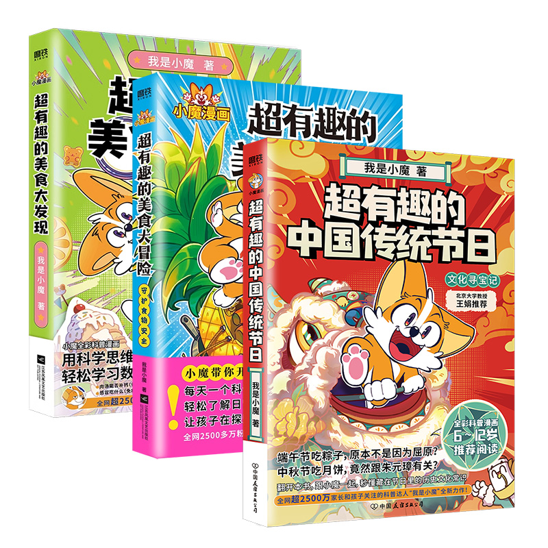 小魔美食大百科全彩孩子打造 小魔科普漫画3册套装 美食大冒险大发现 中国传统节日文化寻宝记 食物安全百科教育儿童绘本 超有趣