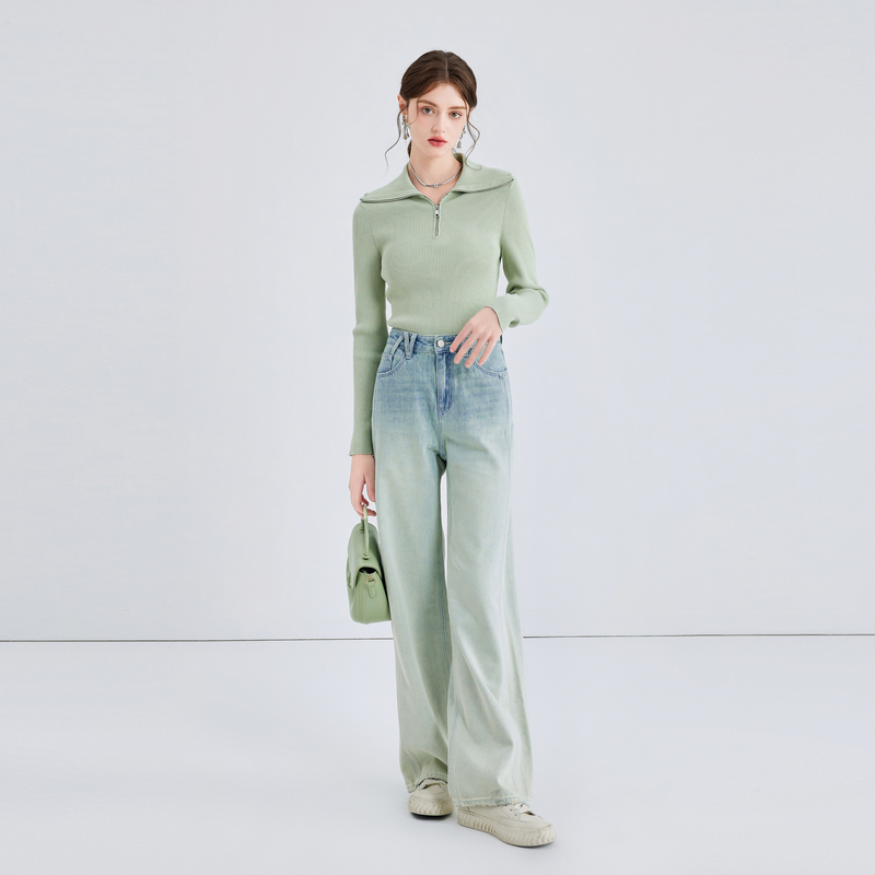 女水洗浅蓝色拖地长裤 秋水伊人设计感宽松阔腿牛仔裤 2025秋秋新款