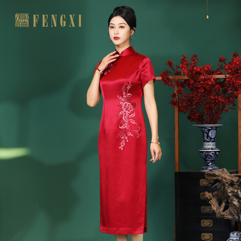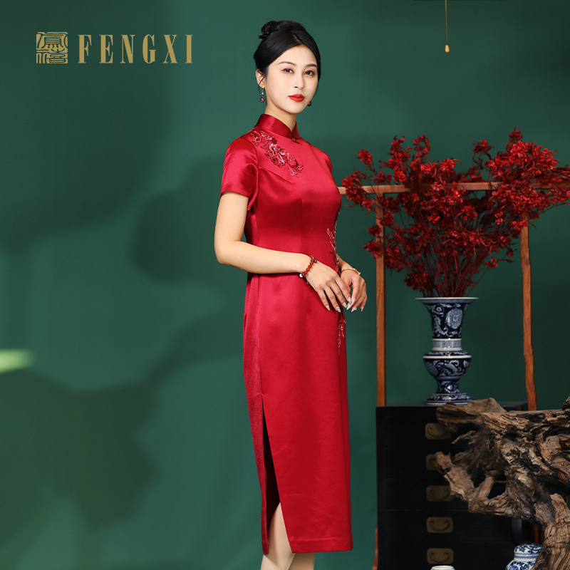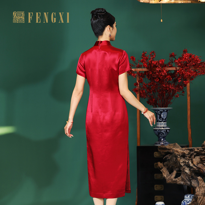 气质大码 红色提花显瘦旗袍微胖新中式 东方美学 连衣裙 babes