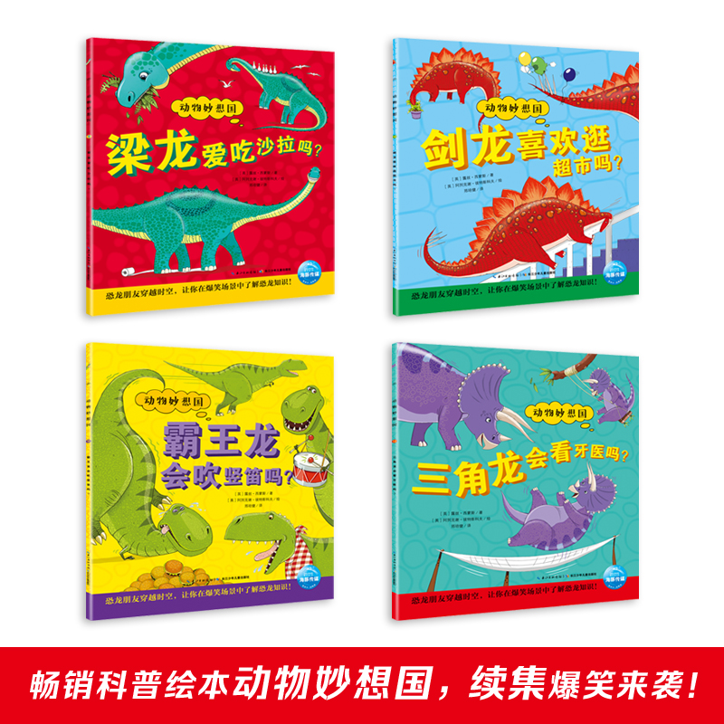 6岁儿童趣味科普绘本爆笑动物认知启蒙图画书三角龙梁龙剑龙霸王龙恐龙科普 恐龙妙想国动物妙想国系列全4册3 当当网正版 童书点读版