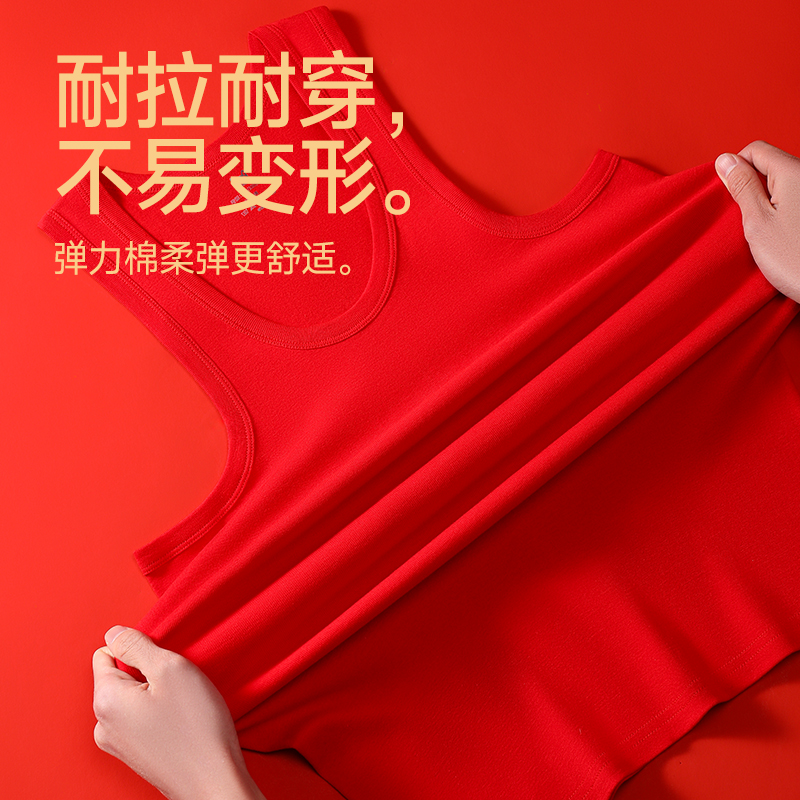 内衣男款 猫人本命年男士 背心纯棉属蛇年衣服大红色打底结婚秋冬季