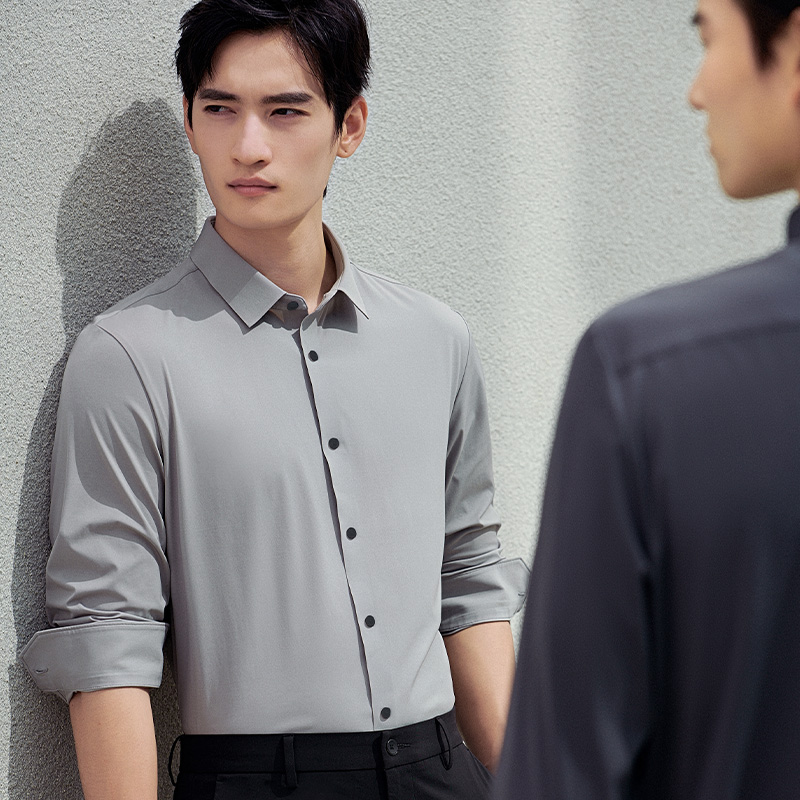 针织高弹衬衫 衬衫 报喜鸟24新款 商务休闲纯色百搭长袖 男款 时尚