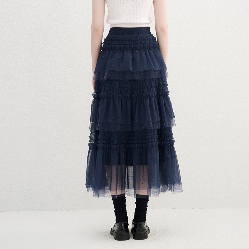 tanni新款 甜美华丽气质显瘦高腰蛋糕纱裙TN11SK057A 法式