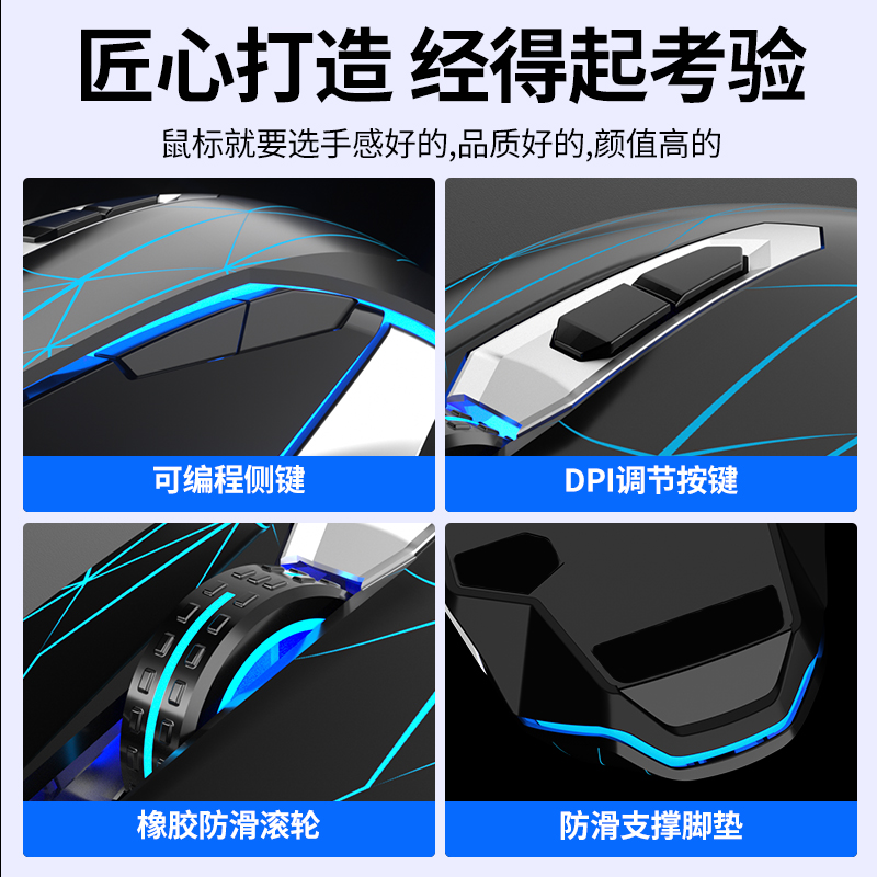 牧马人机械游戏电竞专用办公家用有线宏鼠标台式 机笔记本电脑静音