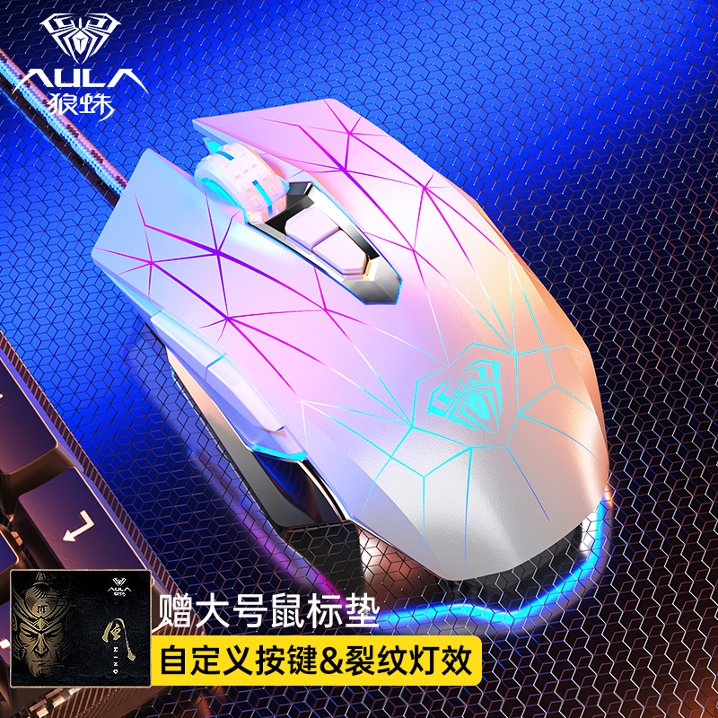 英菲克PW1有线鼠标静音游戏电竞机械宏办公usb台式 笔记本电脑专用