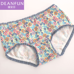 女 舒适透气三角短裤 蝶安芬女士内裤 中腰印花无痕网纱边纯棉裆女式