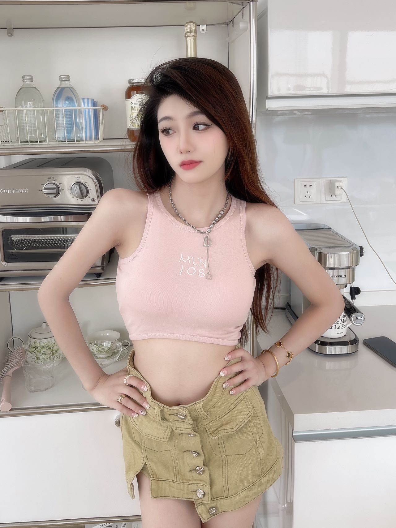 显瘦小众美背上衣 百搭小个子修身 人棉保暖吊带背心女装 带胸垫时尚