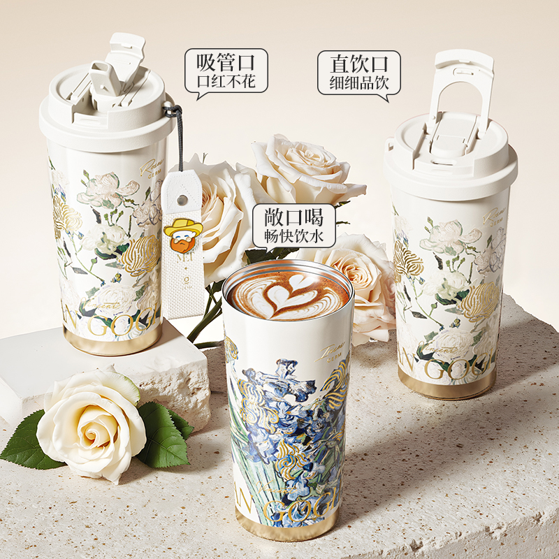 GERM梵高保温杯咖啡杯女生2025新款 高颜值吸管水杯杯子生日礼物