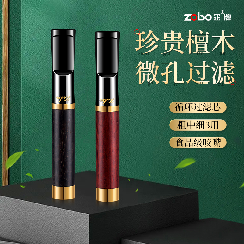 ZOBO正牌烟嘴过滤器 粗中细三用循环可清洗红檀木香烟过滤嘴 正品