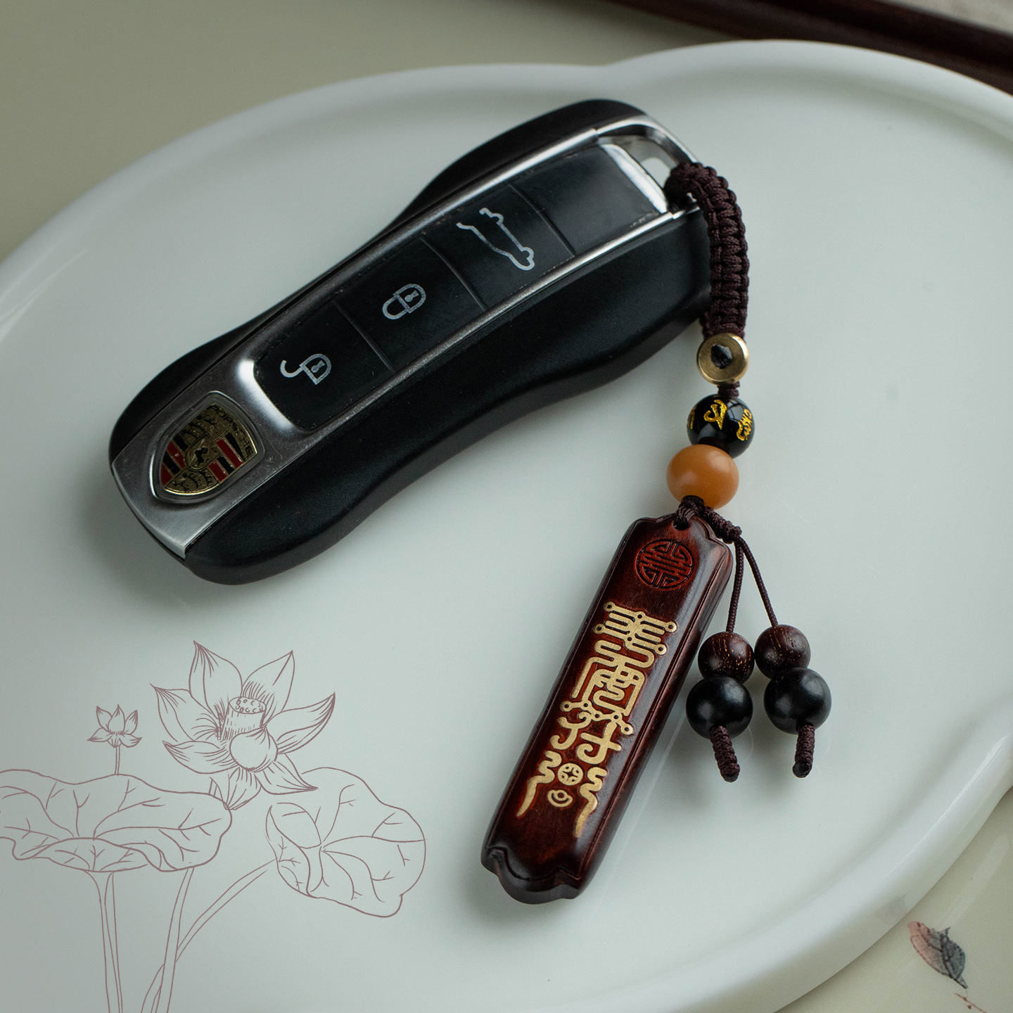 紫檀木防丢神器电话号码 汽车钥匙挂件平安小挂饰 牌钥匙扣刻字男士