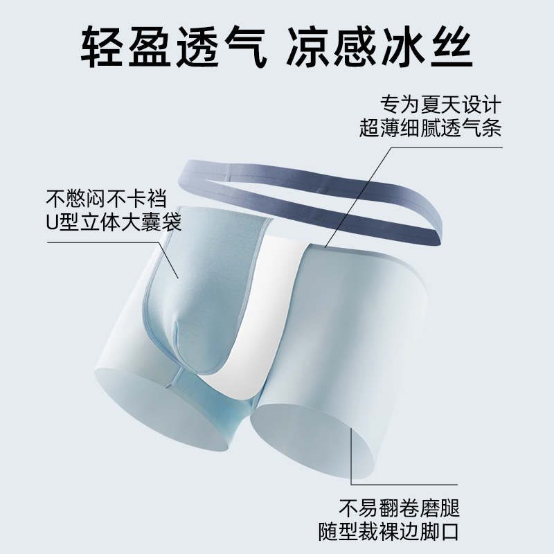 无痕夏季 禾素时代10A抑菌底裆凉感内裤 大码 男四角裤 透气 冰丝内裤