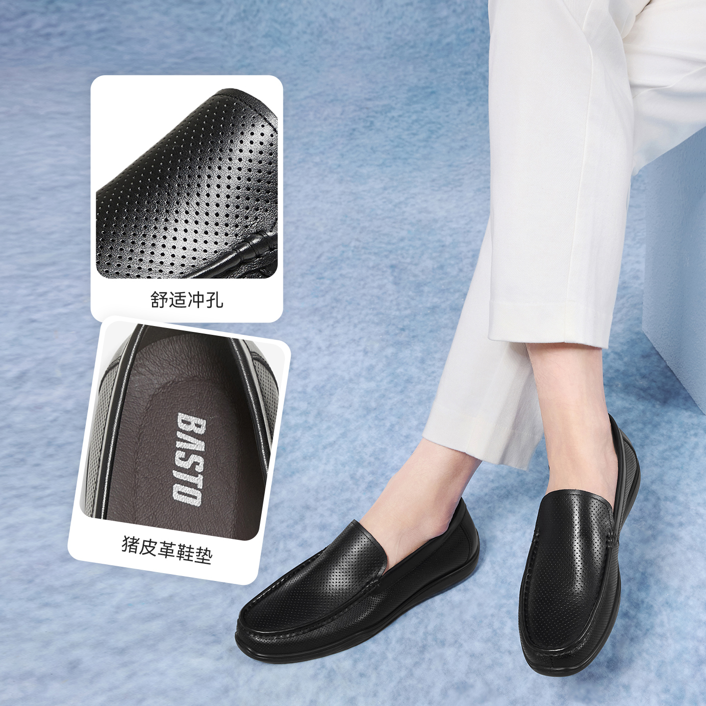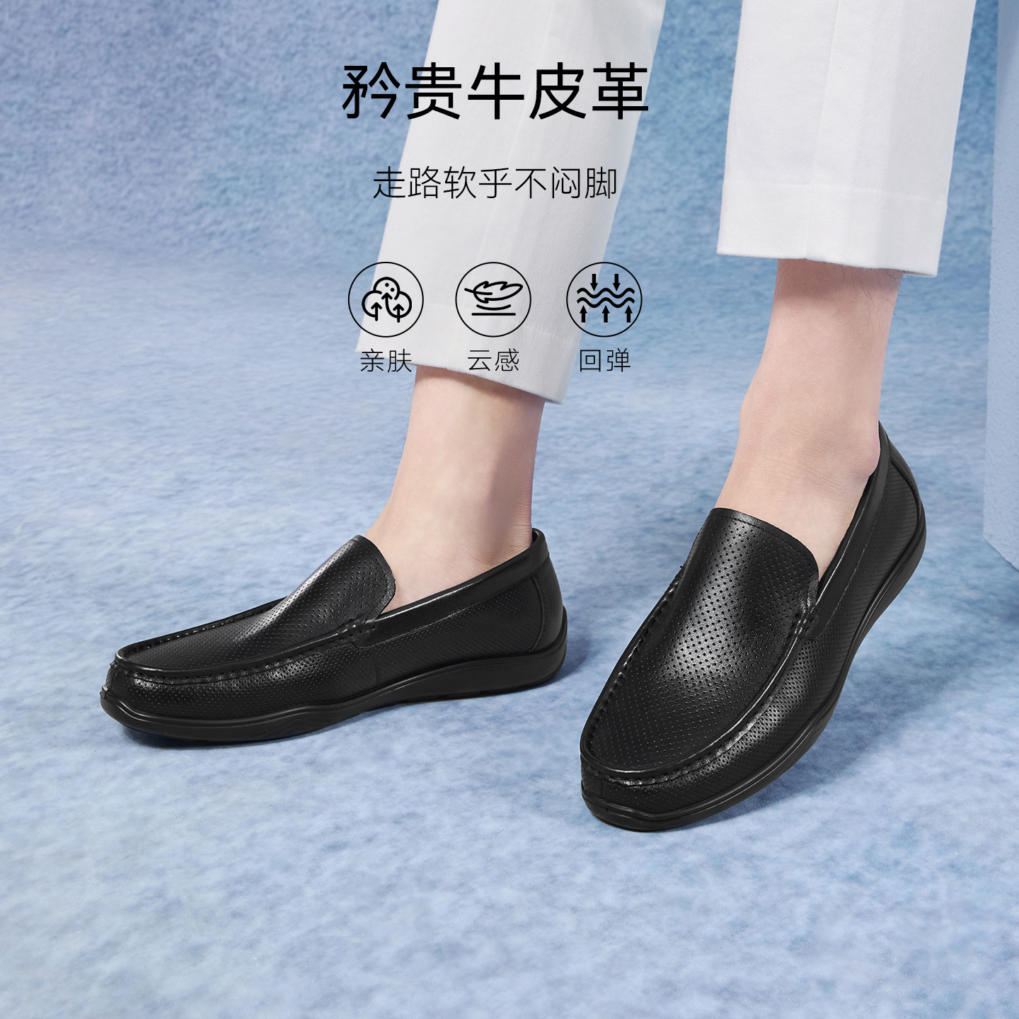 商务男休闲皮鞋 豆豆鞋 51708CM5 真皮乐福鞋 双11预售百思图25秋新款