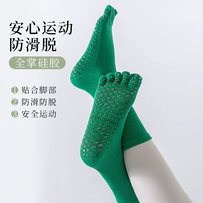 五指瑜伽袜子防滑专业女普拉提中筒室内地板袜成人运动健身防滑袜