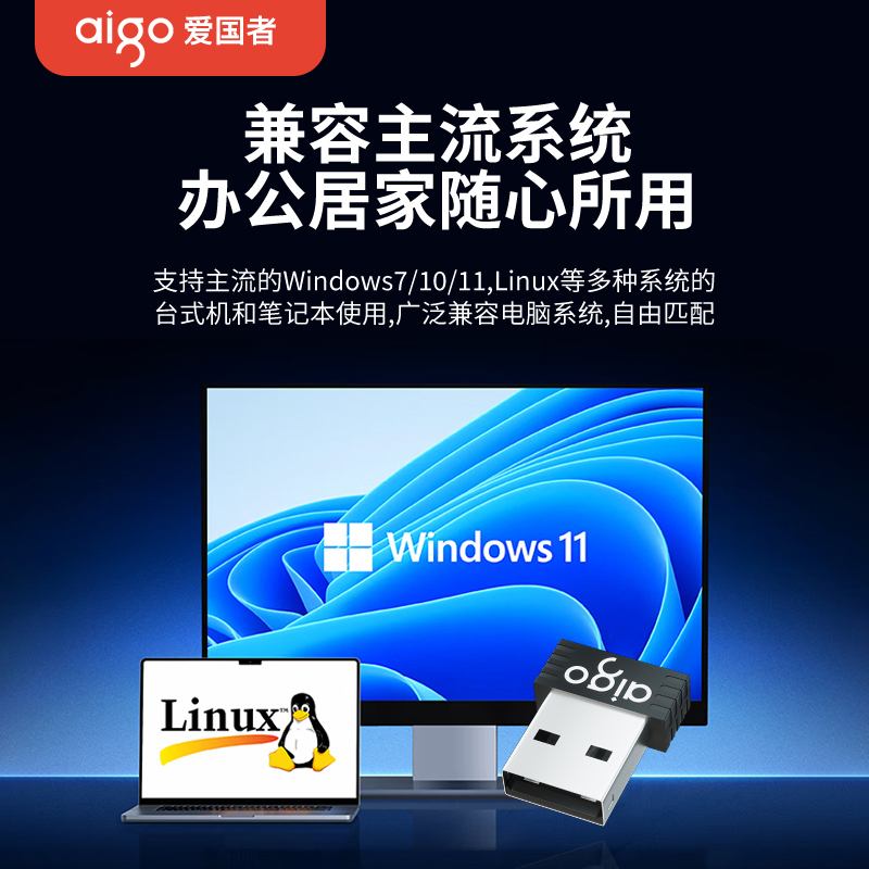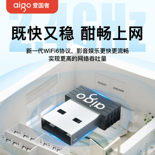 爱国者usb无线网卡台式 机笔记本wifi接收发射器电脑主机无线上网连接热点外置网络千兆5G双频信号免驱动