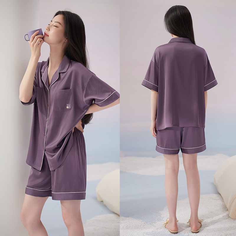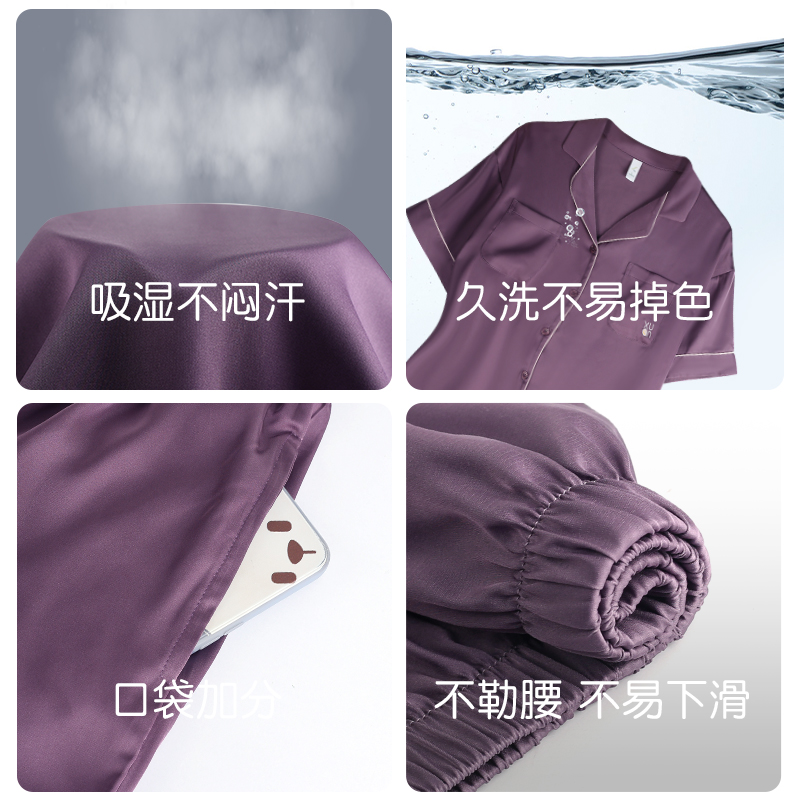 薄款 仿真丝夏天家居服套装 冰丝绸短袖 宽松时尚 短裤 轩靓睡衣女夏季