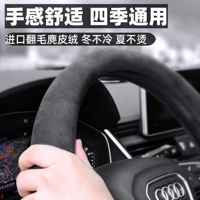 汽车方向盘套翻毛麂皮绒毛绒把套四季 把套 通用免缝防滑吸汗新款