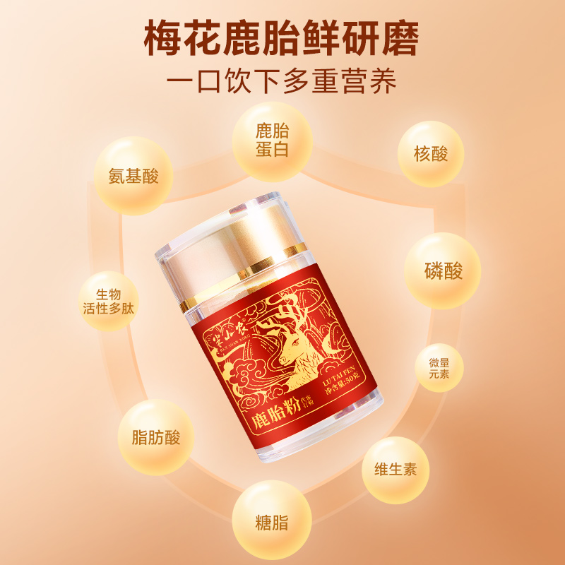 半山农鹿胎粉50g吉林梅花鹿新鲜鹿胎打粉鹿场鲜鹿胎研磨滋补养生