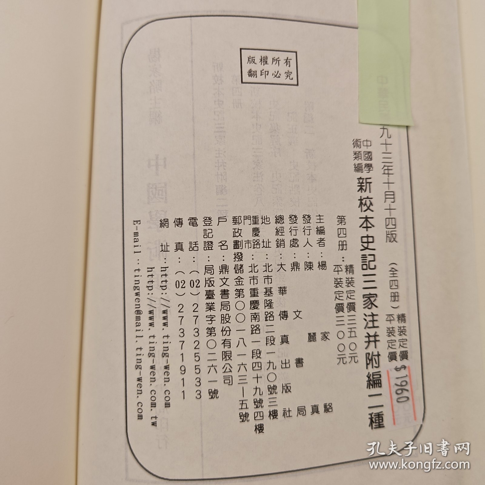 台湾鼎文书局 现货 全4冊 自然旧 杨家骆 2004年10月版 新校本史記三家注並附編兩種史記釋例 精装 正版 主编 港台原版