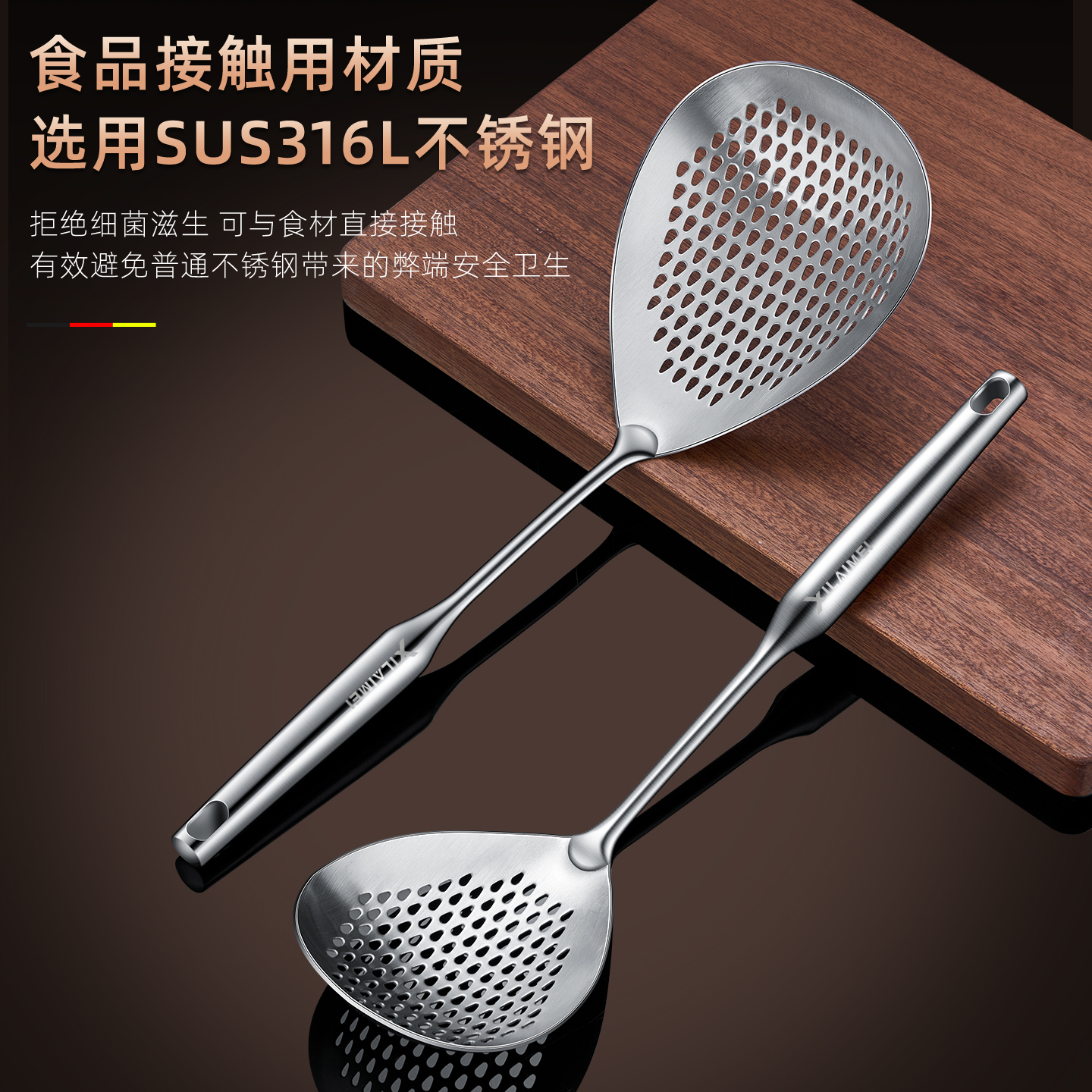 316不锈钢大漏勺家用一体成型笊篱饺子捞面勺油炸漏网勺花椒捞勺