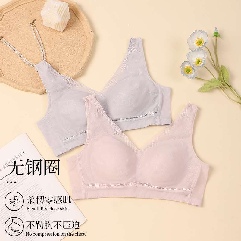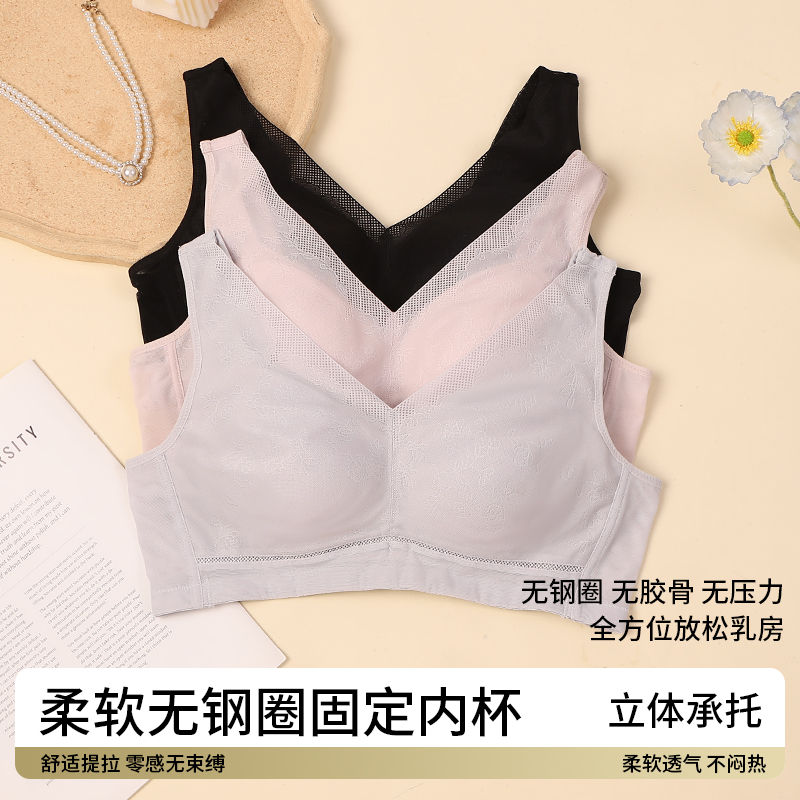 雪妮芳夏季 内衣 轻薄透气无钢圈文胸罩舒适提拉固定杯小提花背心款