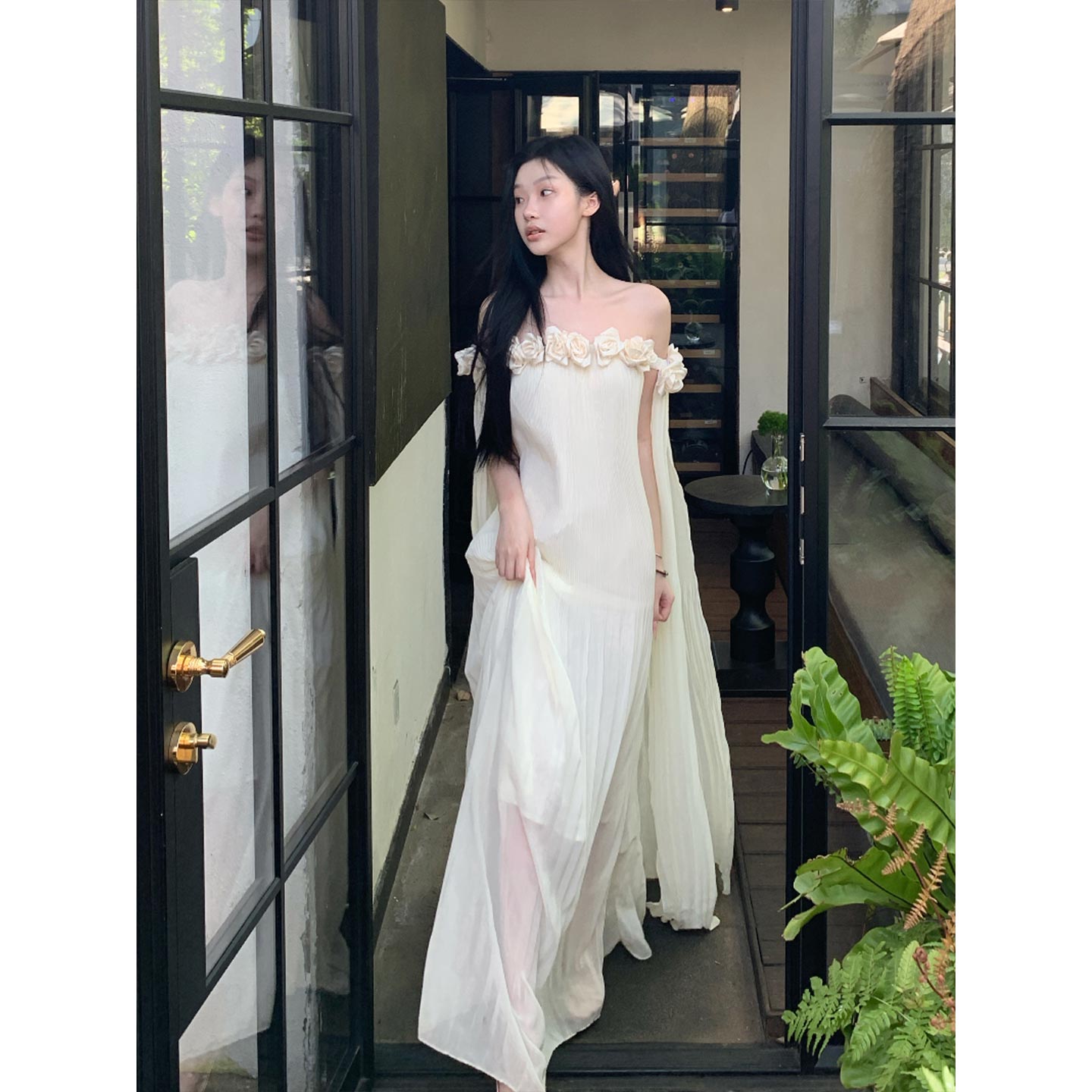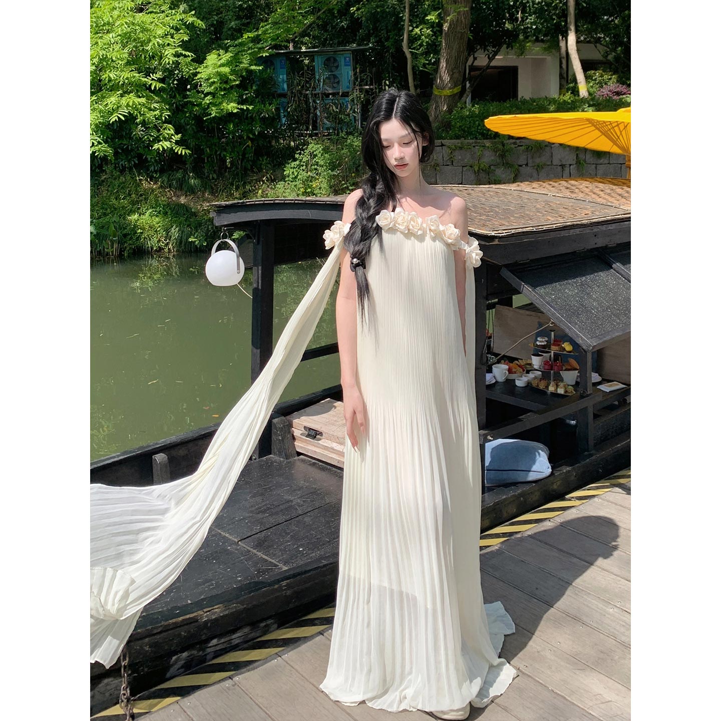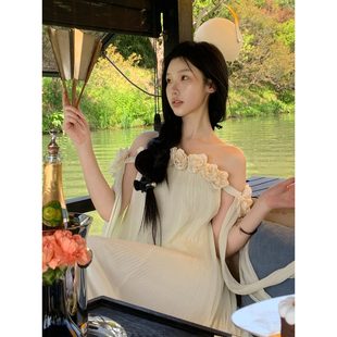 XZY 绝美仙气度假长裙 微胖纯欲气质立体花朵飘带连衣裙女25年夏季