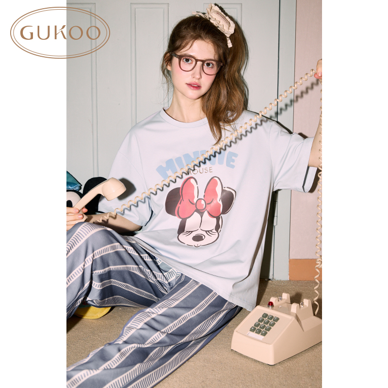 家居服套装 Gukoo 长裤 迪士尼系列米奇短袖 果壳睡衣女春秋款