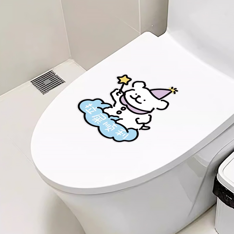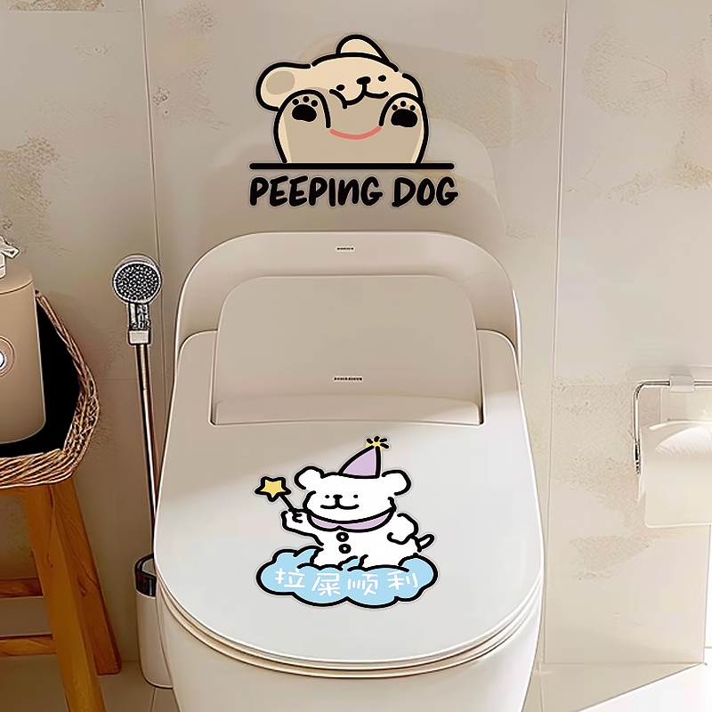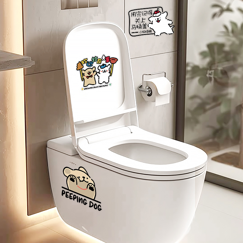 bonjour你好线条小狗马桶贴马桶盖贴防水厕所装 饰拉屎大王趣味