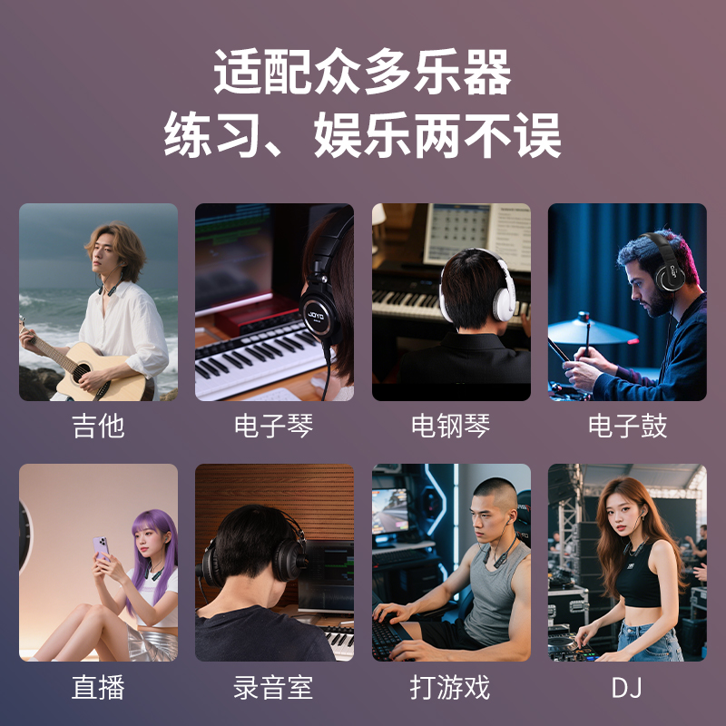 乐器练习专用耳机电吉他贝斯电钢琴电子琴电子鼓监听有线入耳式