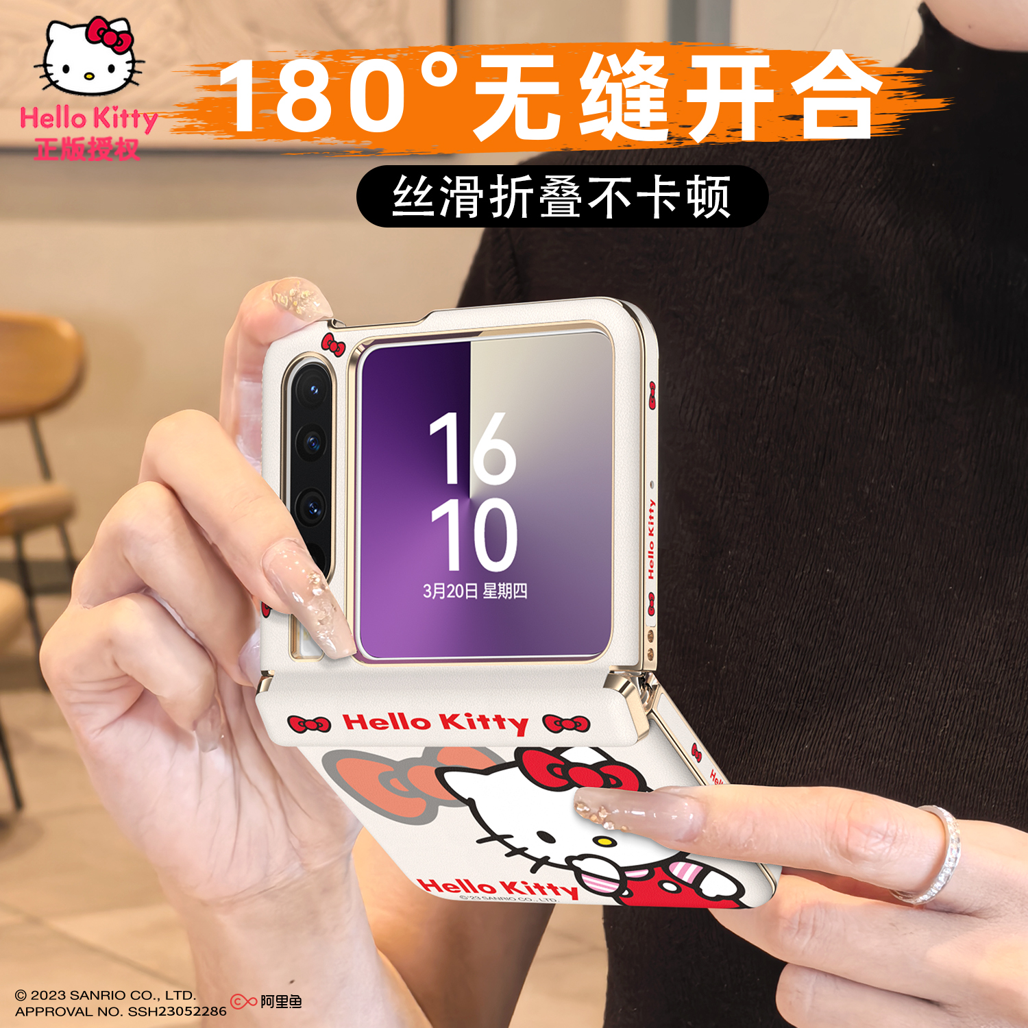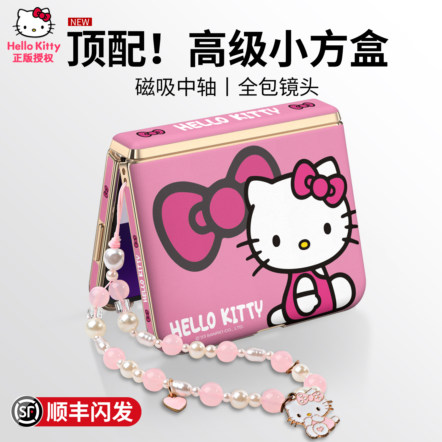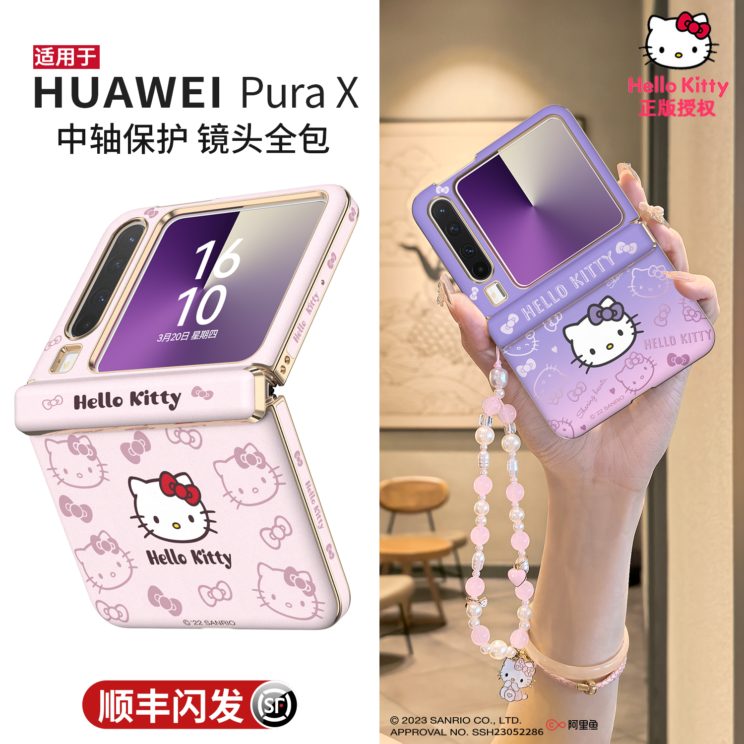 Pura典藏版 适用华为purax手机壳新款 HelloKitty正版 X阔折叠屏磁吸带挂绳手拎高档皮纹斜挎女 中轴铰链全包