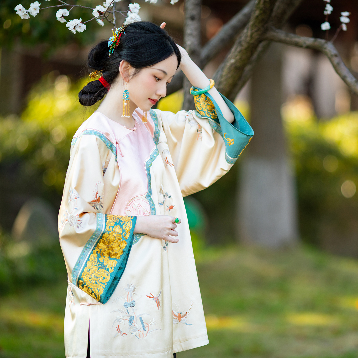 现货织造司原创明制马面裙汉服点翠配山河映画飞机袖 上衣 百搭衬衫