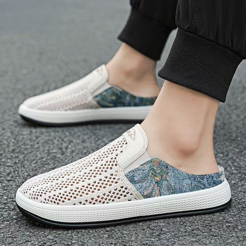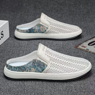包头外穿轻便软底洞洞网鞋 透气网孔一脚蹬男鞋 耐磨厚底 男款 半拖鞋