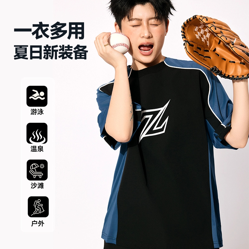 佐驰歌束胸泳衣中性风分体游泳衣女款 速干显瘦夏天海边穿搭三件套