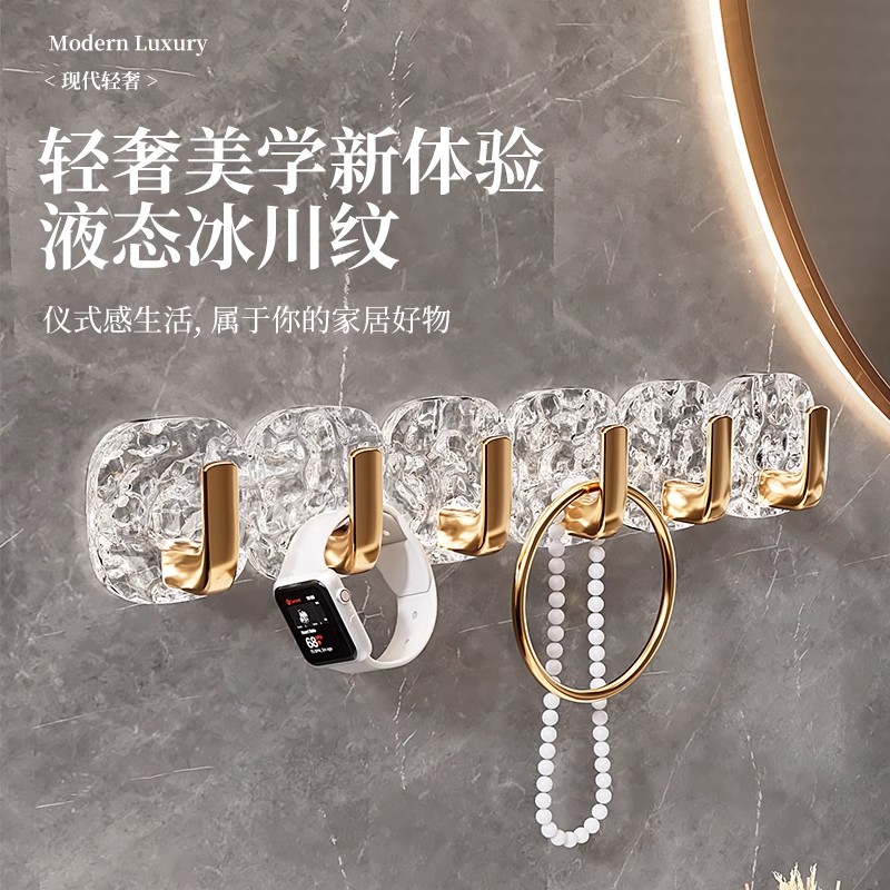 轻奢冰川纹6连挂钩浴室免打孔强力粘钩卫生间壁挂式 挂钩厨房挂钩