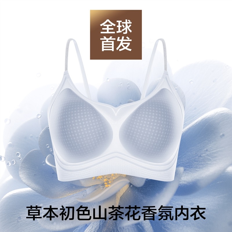 山茶花香氛隐形无痕内衣女夏季 超薄凉感细肩带小胸聚拢防下垂文胸