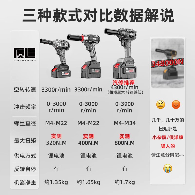 质造无刷电动扳手大扭力锂电池充电冲击扳手架子工套筒汽修电风炮